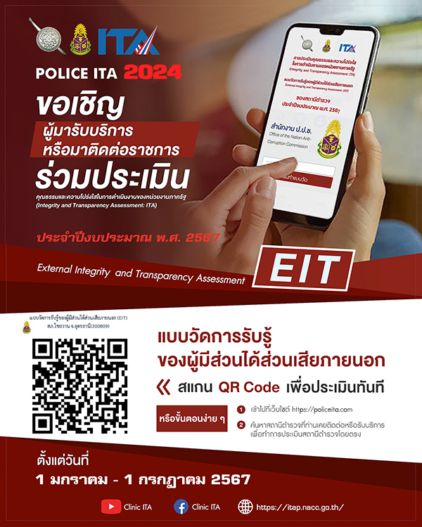 เชิญบุคคลภายนอก ร่วมทำ แบบประเมินคุณธรรมและความโปร่งใสในการดำเนินงานของสถานีตำรวจภูธรไชยวาน