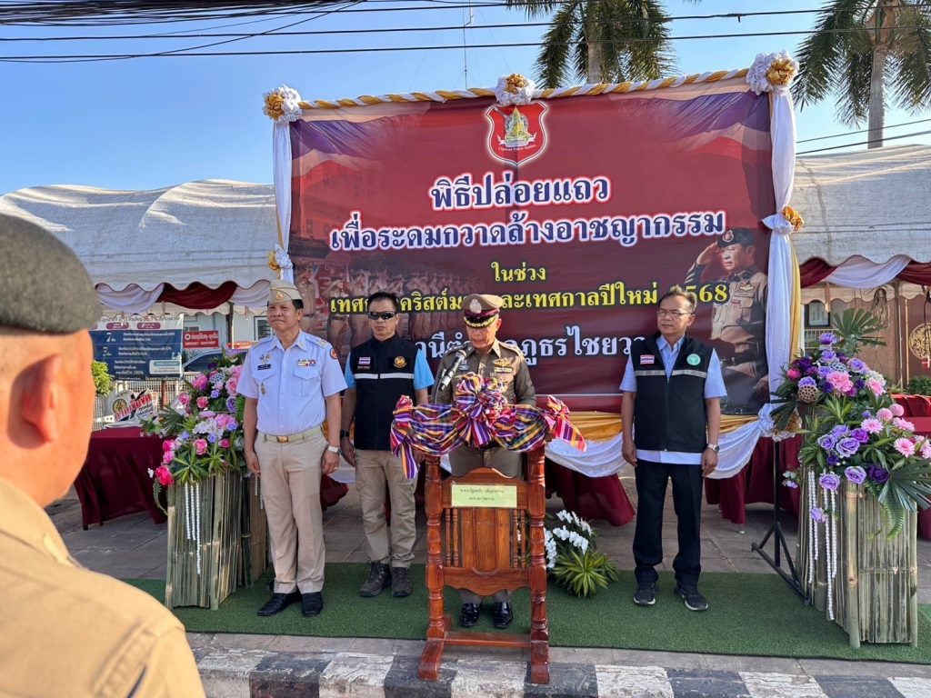 วันนี้ 24 ธ.ค. 2567 เวลา 09.30 น. พ.ต.อ.รัฐพลชัย เพ็ญสงคราม ผกก.ฯ ทำพิธีปล่อยแถวกวาดล้างอาชญากรรมที่บริเวณหน้าโรงพยาบาลไชยวาน โดยมีส่วนราชการต่างๆในพื้นที่เข้าร่วมพิธี
