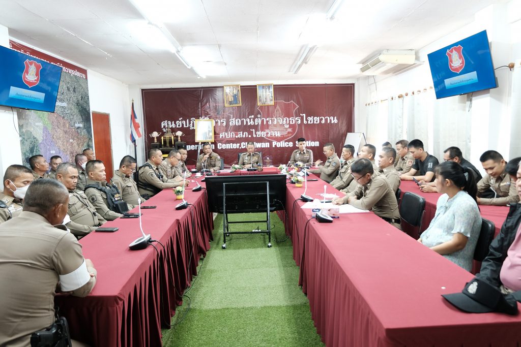 - ผู้กำกับการสถานีตำรวจภูธรไชยวาน ประชุมชี้แจงและให้ข้อมูลเกี่ยวกับการประเมินแก่เจ้าหน้าที่ตำรวจในหน่วยงาน