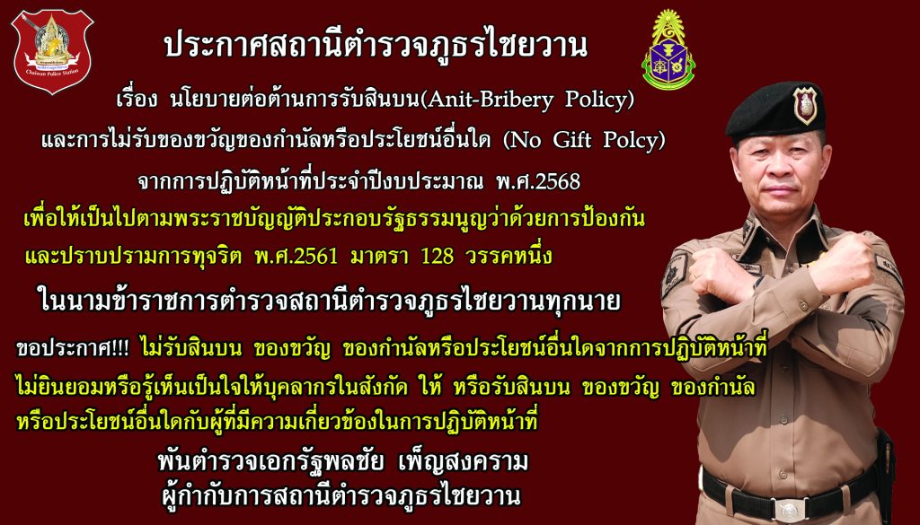 O18 ประกาศนโยบายต่อต้านการรับสินบน(Anti-Bribery Policy)