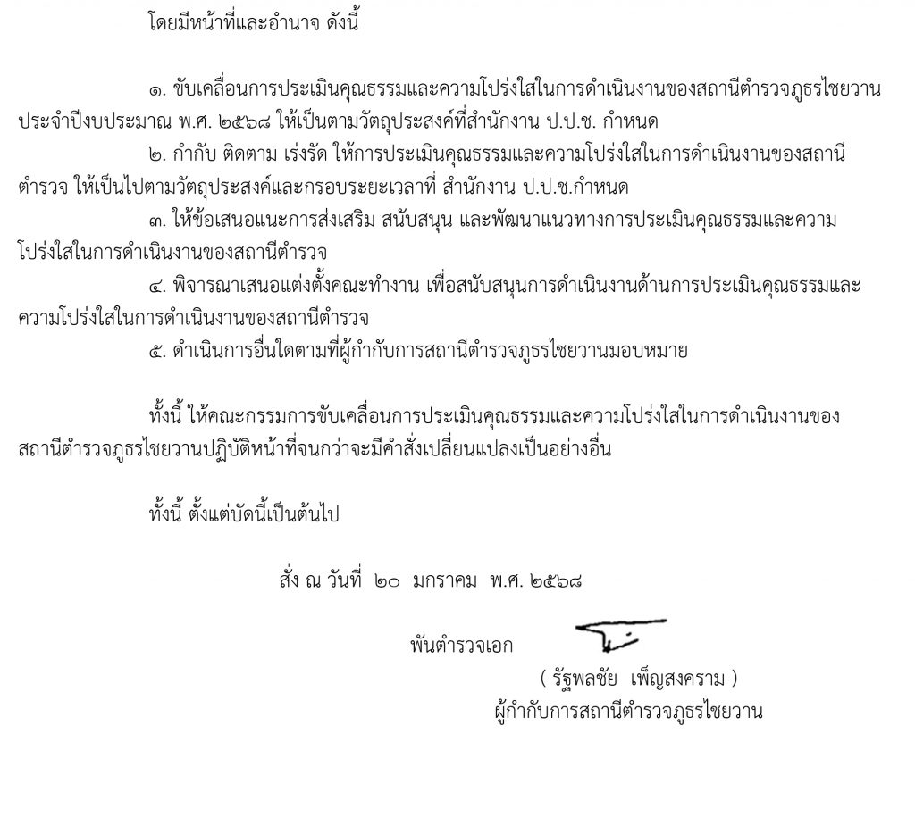 สถานีตำรวจภูธรไชยวาน ได้ดำเนินการตามมาตรการการยกระดับคุณธรรมและความโปร่งใสภายในหน่วยงานดังนี้